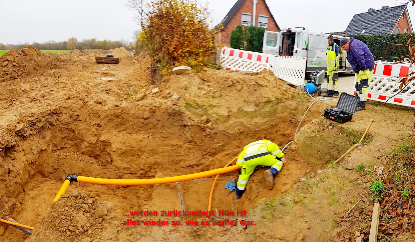 Ihr Los ist es, dass das Ergebnis ihrer schweren Arbeit unter der späteren Straße liegt und von Niemandem gesehen wird. Ich werde, wenn ich in Zukunft an Baustellen mit Tiefbauarbeiten vorbeifahre, diese mit ganz anderen Augen sehen. Die Arbeiter haben unser aller Bewunderung verdient. Schließlich haben sie die Grundlage geschaffen, dass 11 Familien ein neues, eigenes Zuhause in unserem Dorf finden.